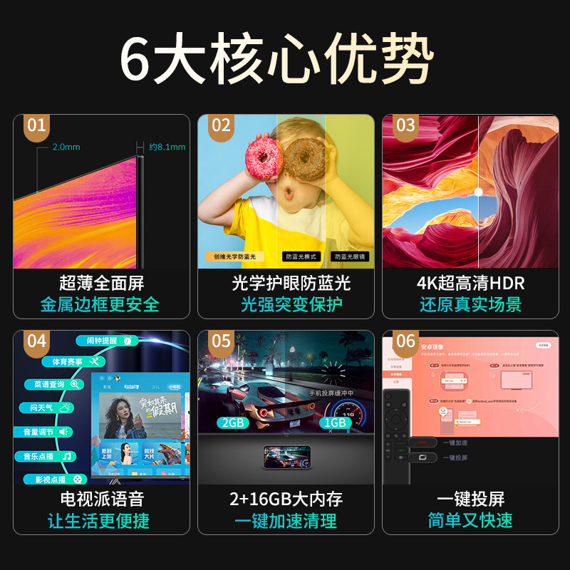 Crewy official flagship store 3T 55 inches 4K High picture quality TV Smart Internet Home appliances Eye on TV 65