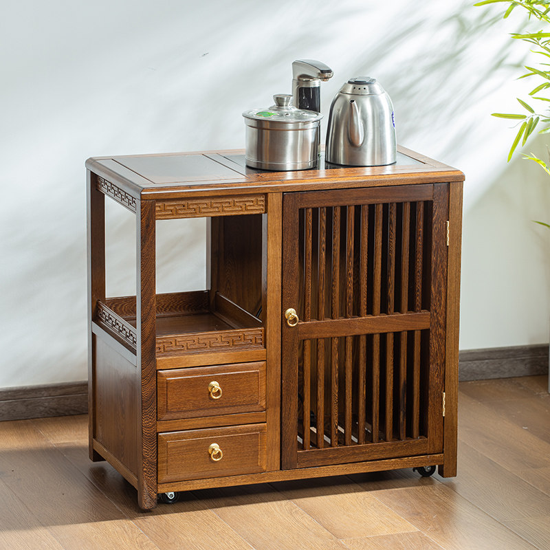 Mobile tea cabinet Chicken wing wood solid wood tea cabinet Tea table kettle one new Chinese household tea table side cabinet side cabinet