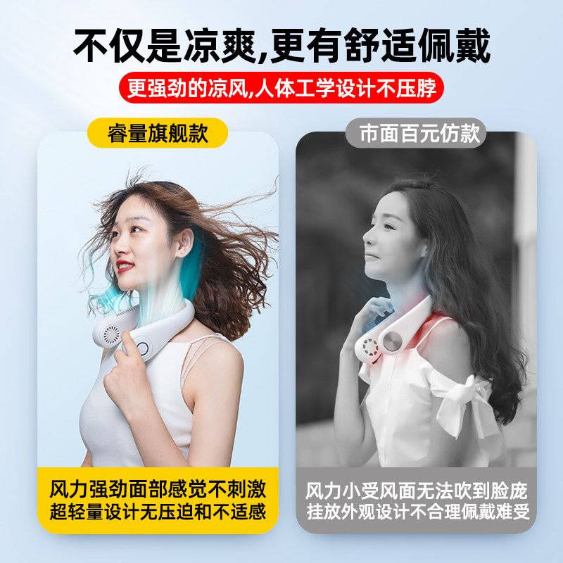Smart halter neck fan Hanging neck hanging neck small fan Refrigeration air conditioning usb portable portable small leafless charging Children's mini student lazy outdoor kitchen Big wind silent fan