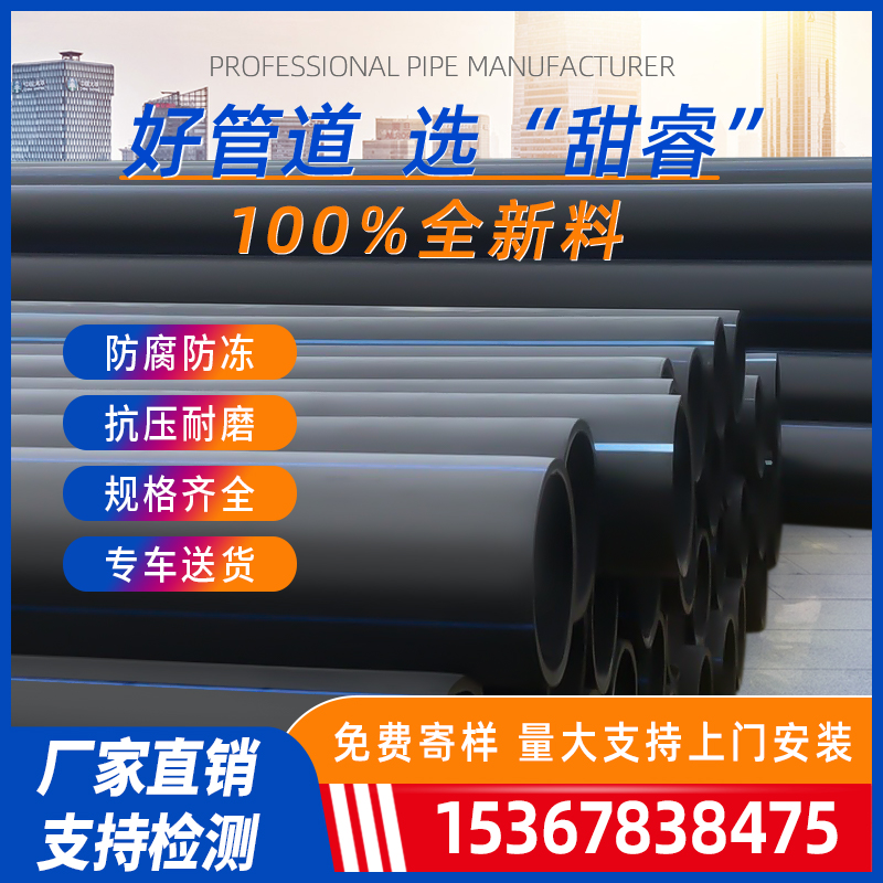 Large caliber pe pipe 110 to water pipe 160 hot melt pipe completely new material 315 farmland irrigation hard pipe 200 tap water pipe