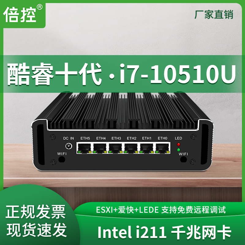 Double control I7-10510U 6 one thousand trillion Internet interface Industrial computer ESXI ROS Love fast lede Openwirt Pfense No fan Micro Computer Four