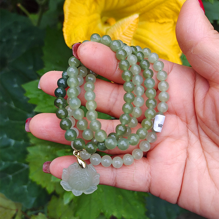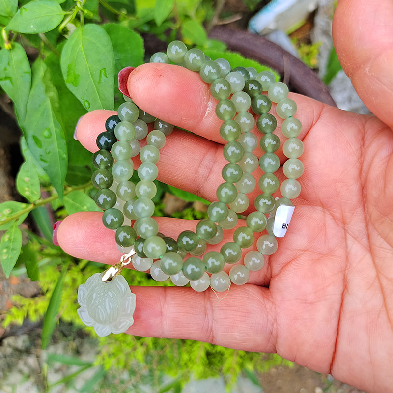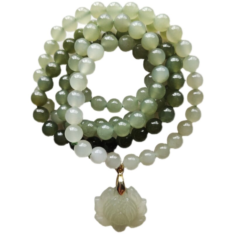 Natural Hetian green and white jade gradient clear water lake old-fashioned pearl multi-circle hand-carved female jade all-match certificate of identification