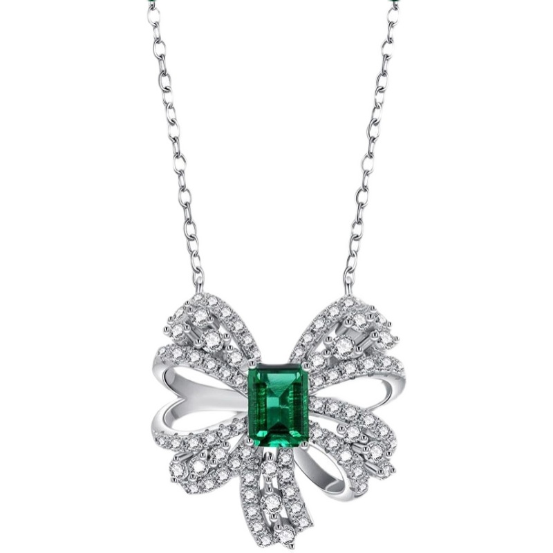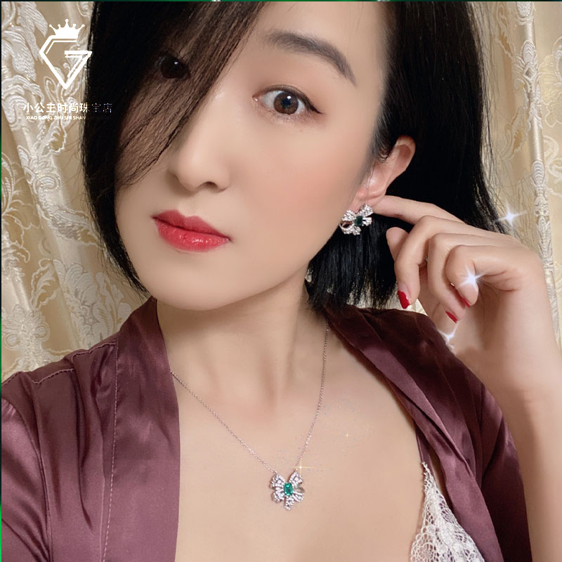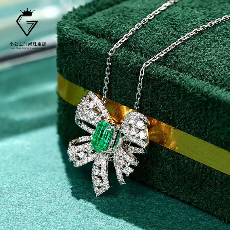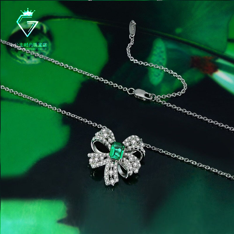 18K Platinum Necklace Platinum Inlaid Ancestral Mother Green Pendant Female Retro Full Drill Butterfly Knot Lock Bone Chain Mossan Neck Necklace