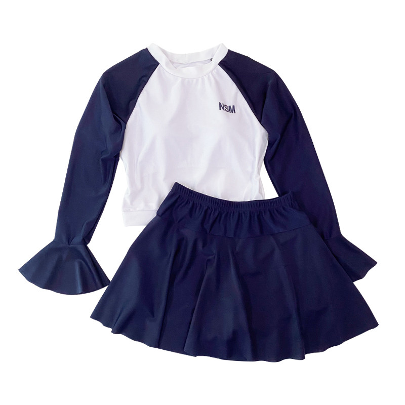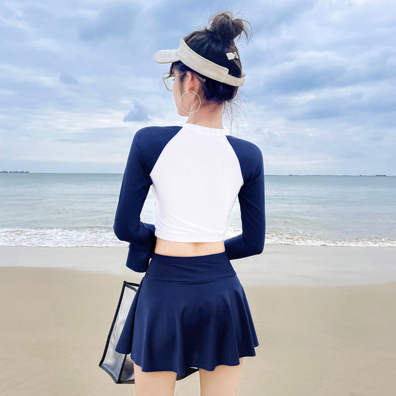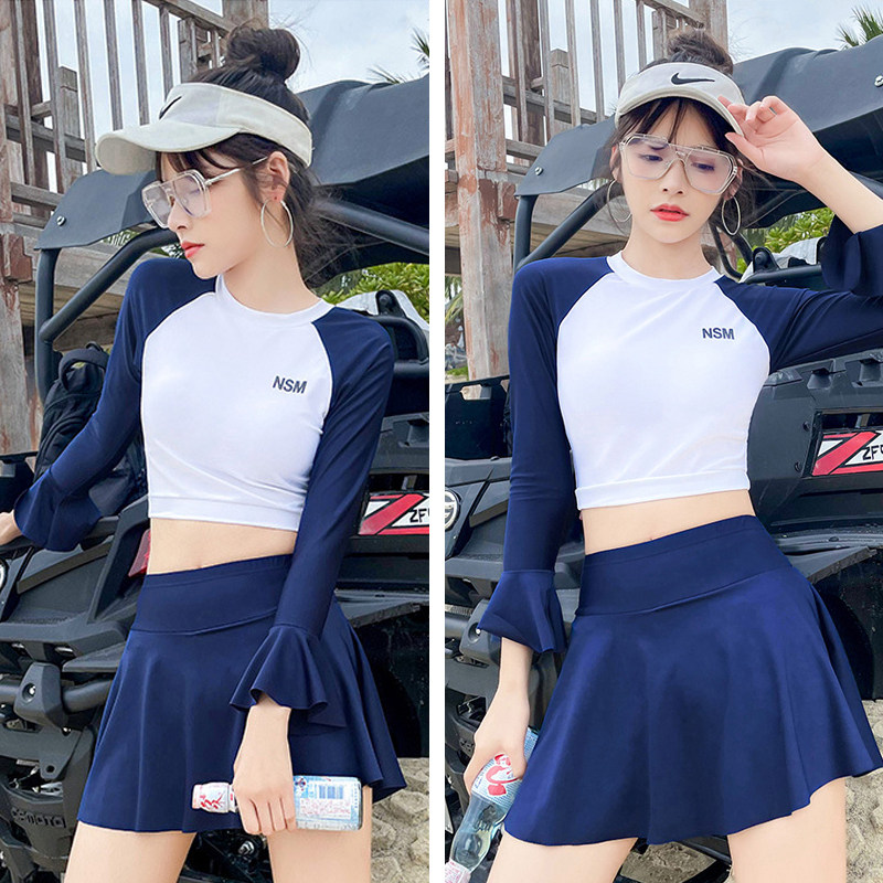 2021 New Students Conservative Swimsuit Women Summer Dress Style Long Sleeves Veil Slim Two-piece Sports Professional Class Swimsuit