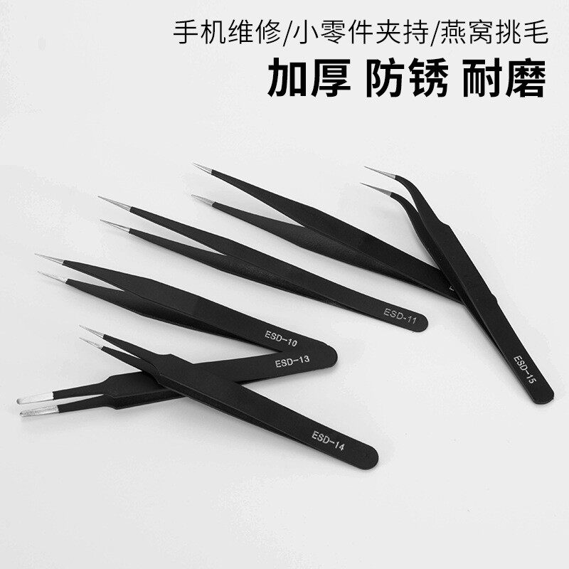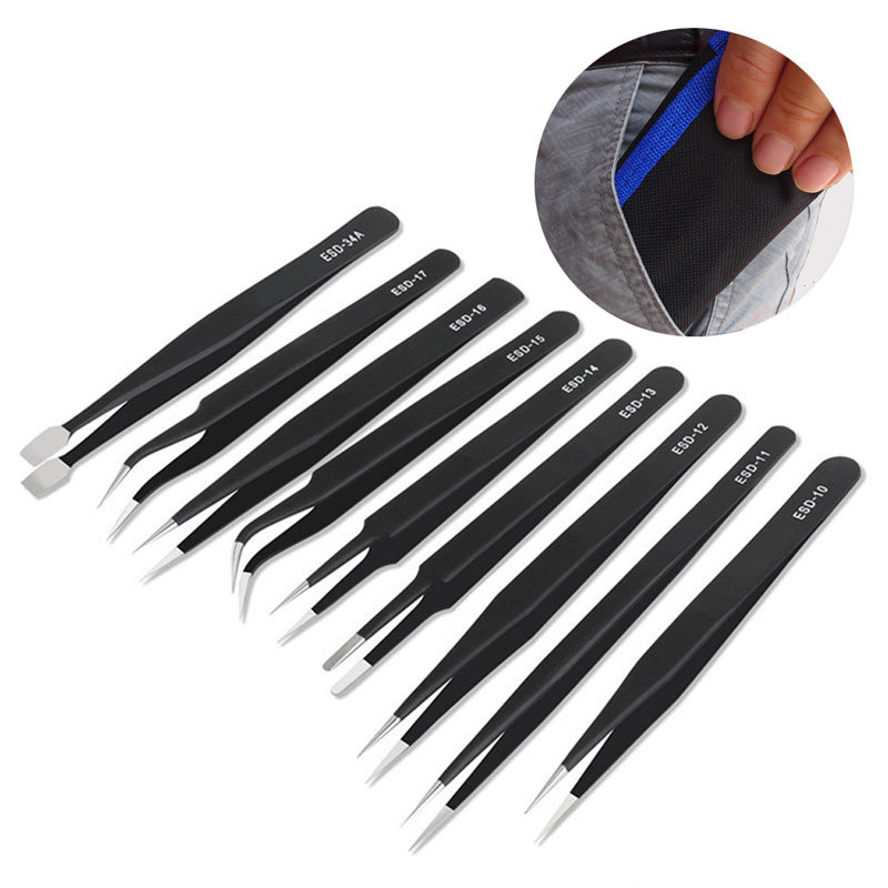 Fine Black Tweezers Canvas Bag Multi-piece Set Pointed Flat Head Straight Elbow Bird's Nest Hair Picking Digital Repair Applicable - Taobao