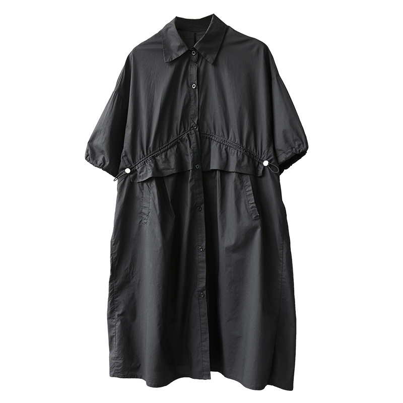 Xiao said design sense small crowdshirt dress Korean version casual loose with pleats pure color cotton cloth for women's summer