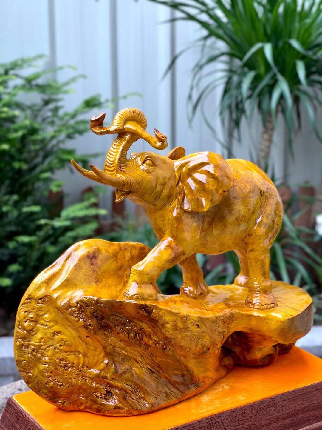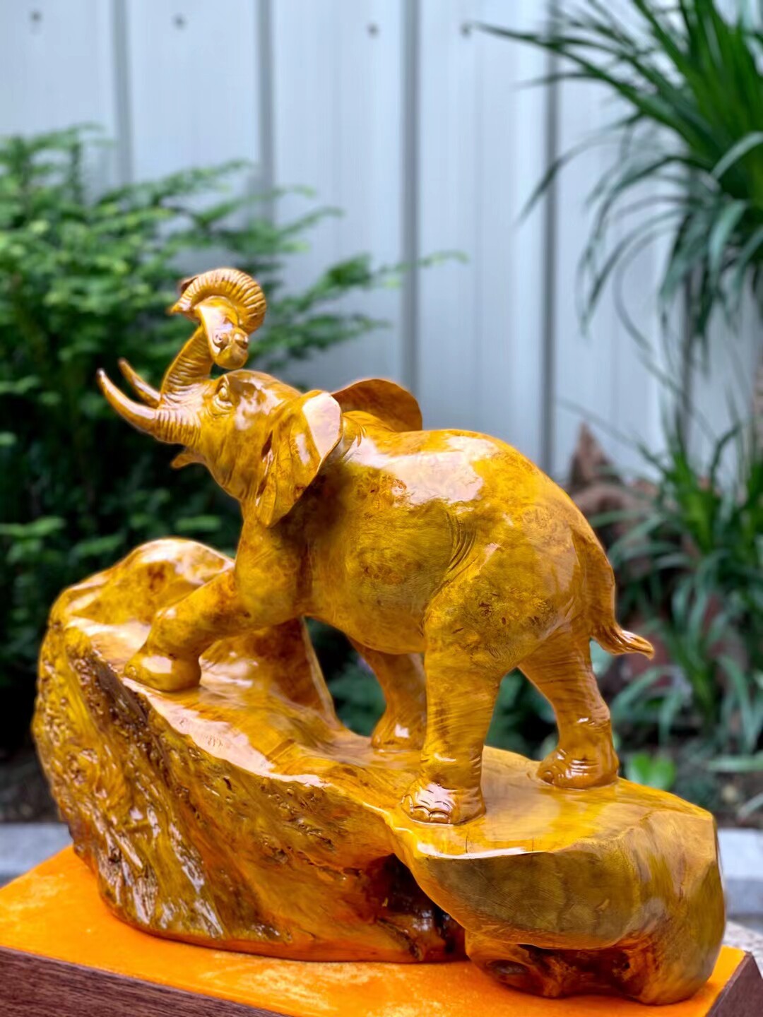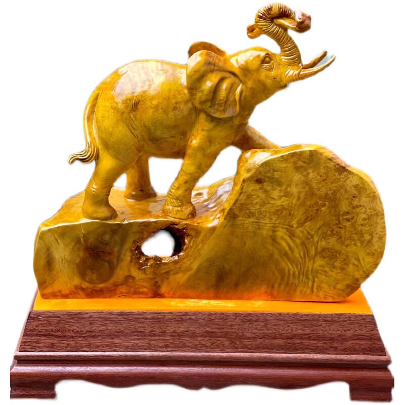 Hot Sell Spot Myanmar Gold Zhanggan Sculpture Pendulum Pieces Living Room Office Wood Carving Craft Gift Hem The Elephant auspicious Ruyi