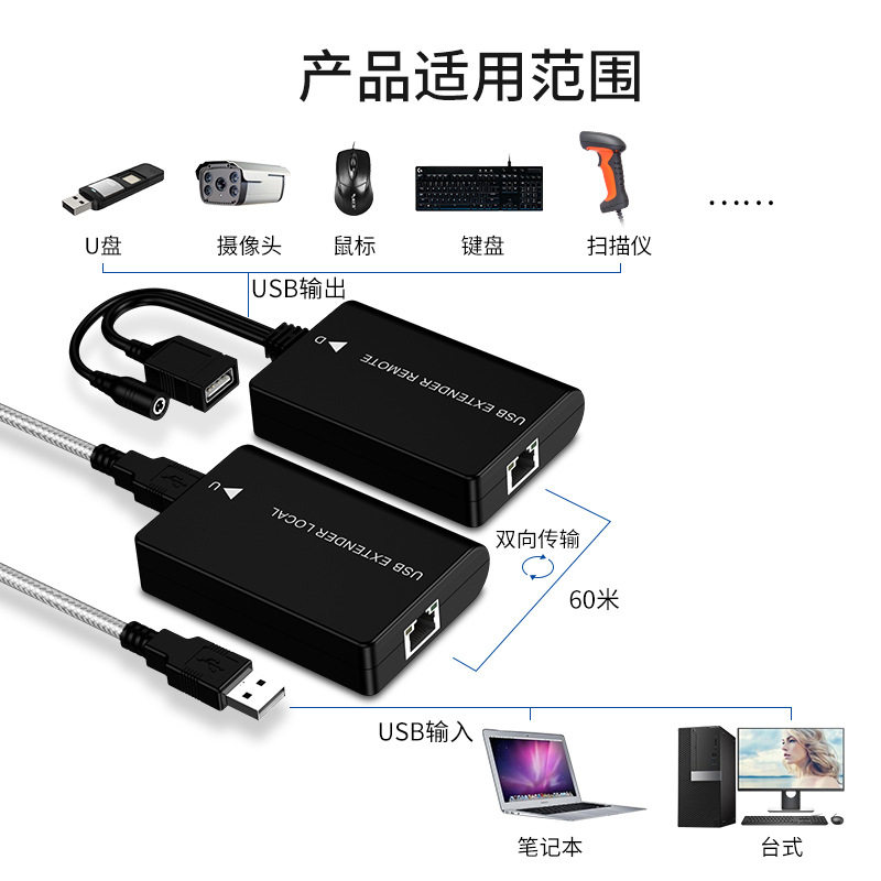 USB extender signal amplifier 60 m USB to RJ45 network extension external printer scanner camera
