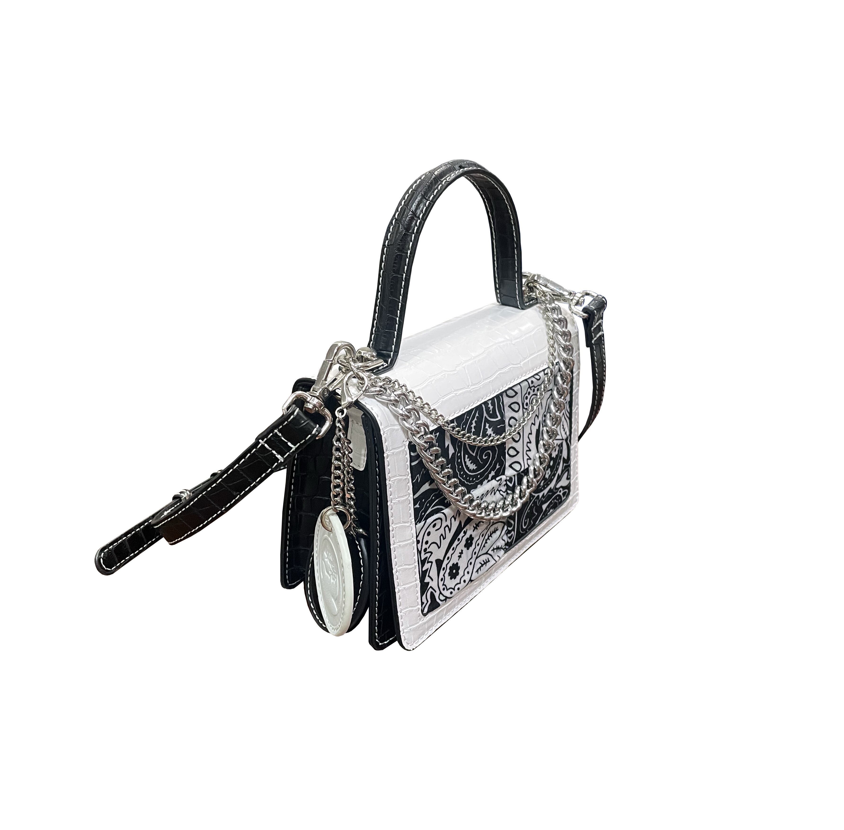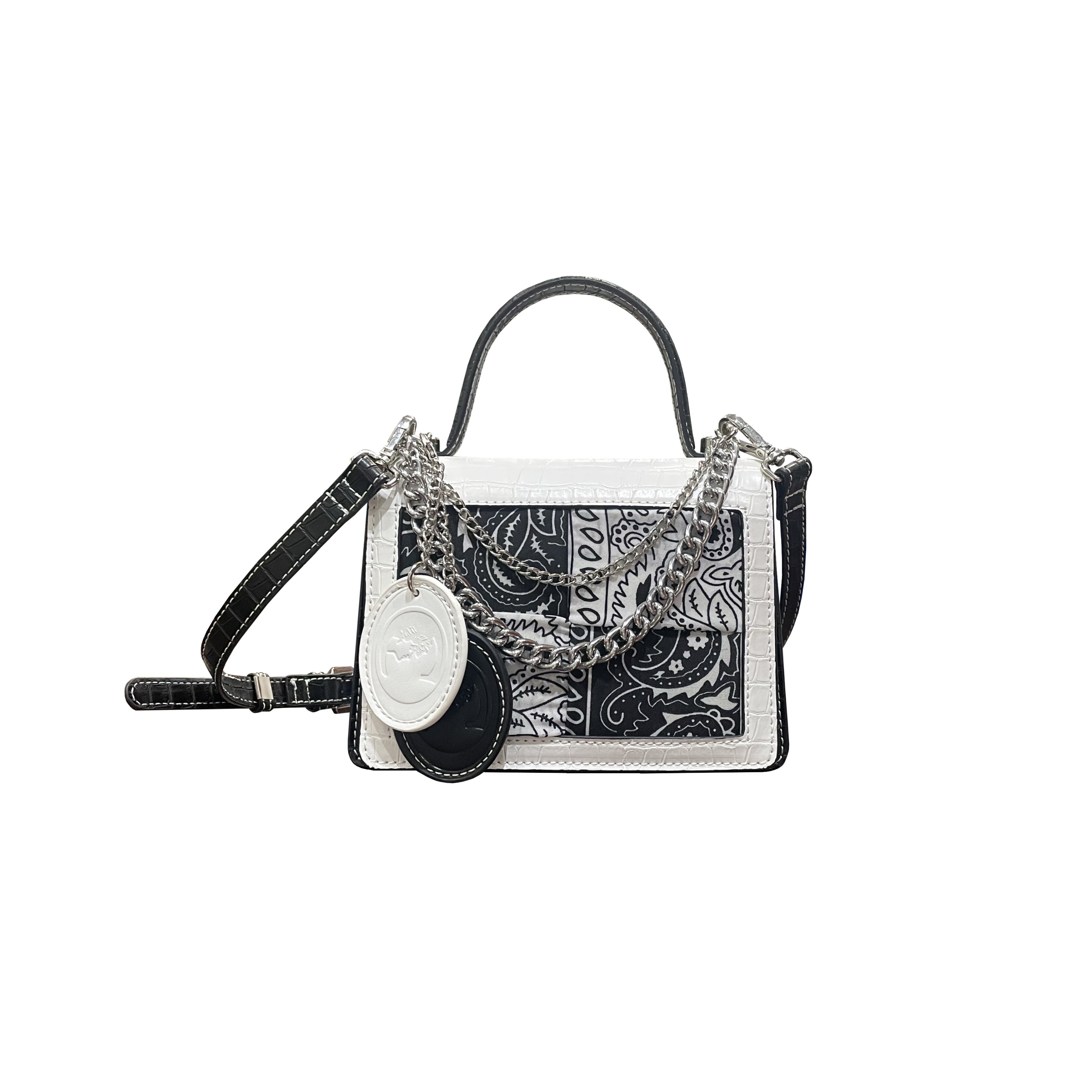 Cultivator original trendy street black and white cashew square scarf crocodile pattern leather flap portable crossbody bag
