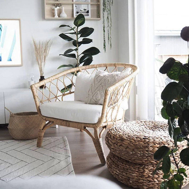 ins real rattan single sofa chair simple small coffee table balcony simple rattan chair homestay Southeast Asia rattan sofa chair