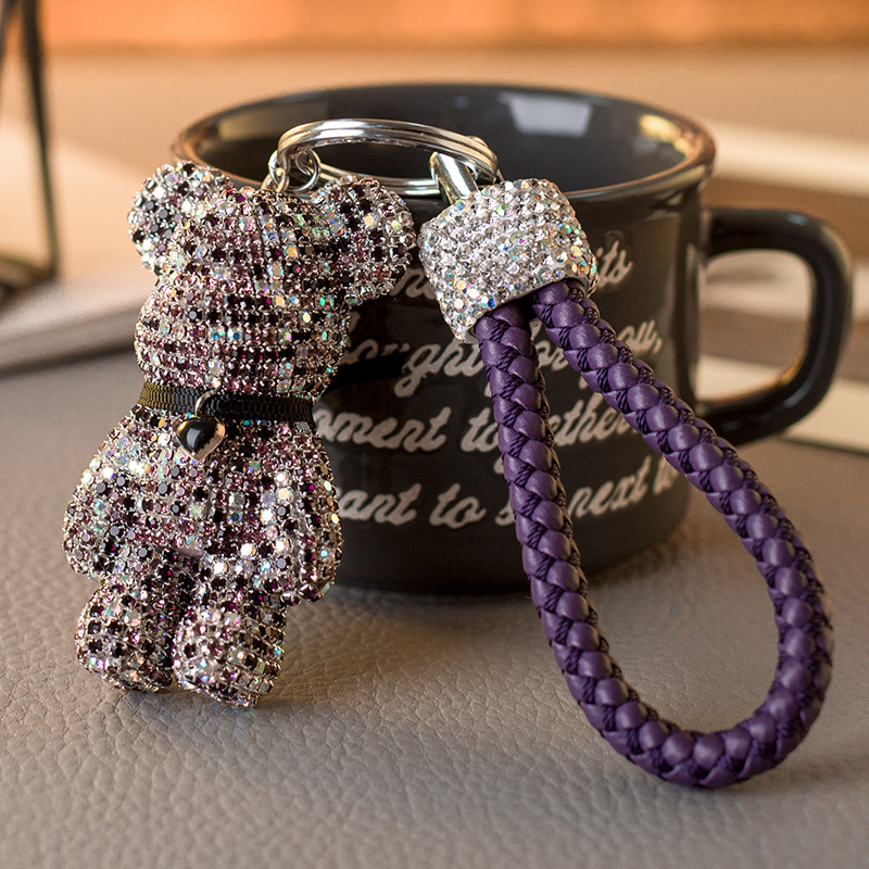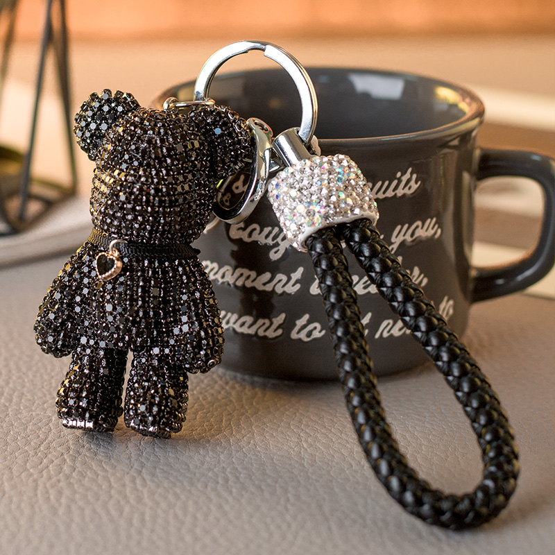 Diamond-studded cartoon keychain men and women creative bear key chain personality car key pendant couple gifts