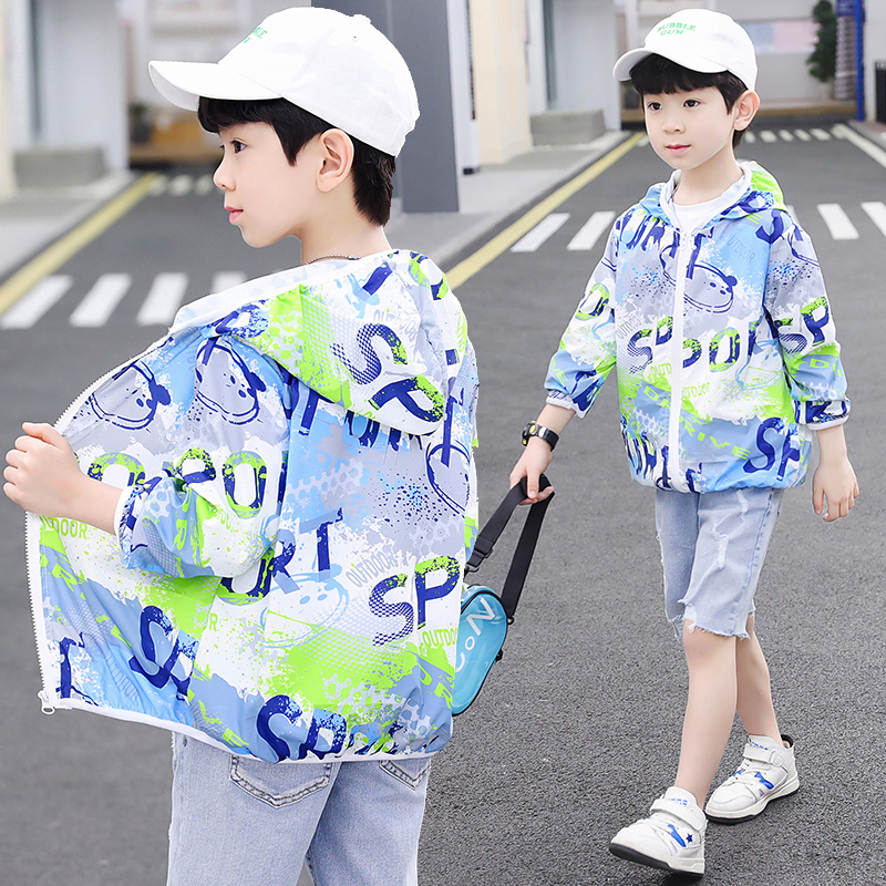 Boys' sun protection clothing 2022 summer breathable middle-aged and older children's anti-ultraviolet jacket handsome children's sun protection clothing thin section trendy