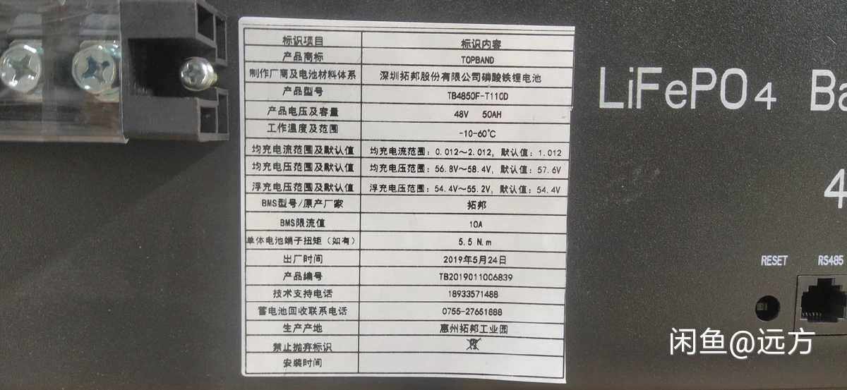 Rio Tinto TB4850F-T110D communication with lithium battery group 48V50AH lithium iron phosphate