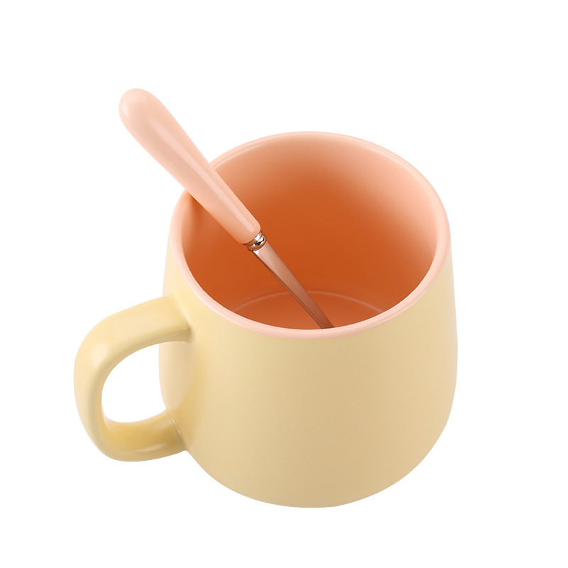 Nordic ins creative mug with spoon color contrast coffee cup simple ceramic water cup with lid matte milk cup