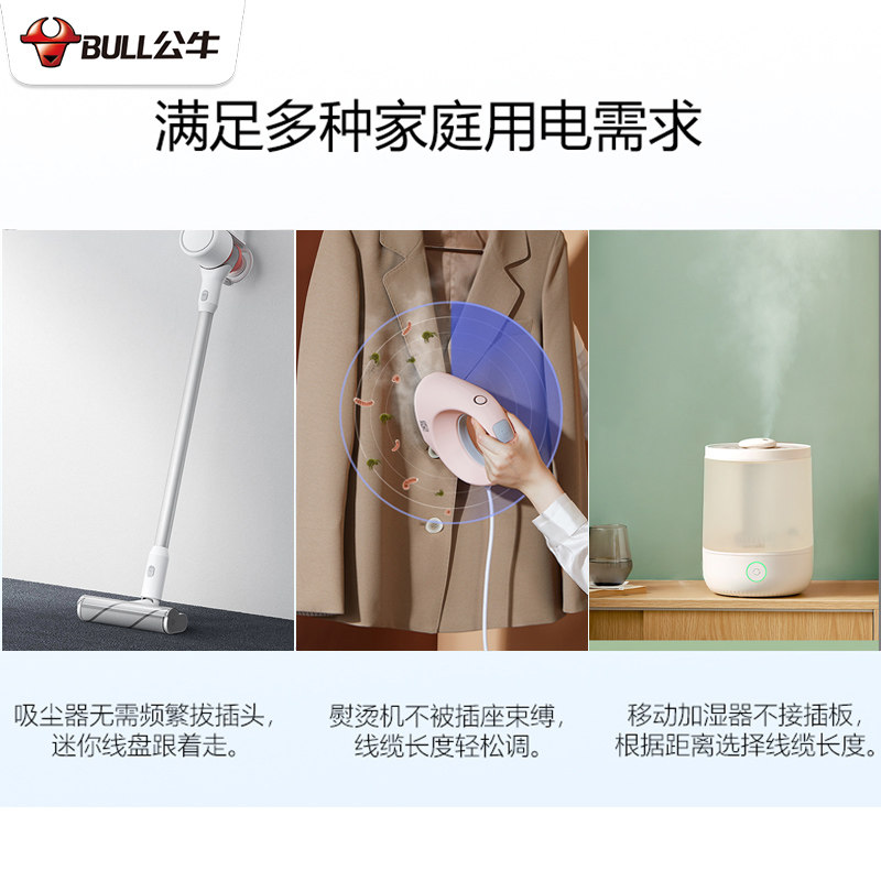 Bull Action Power Socket Home Roll Line Disc Extension Cord Extendable Extension Extension 5 10 m Wiring Board
