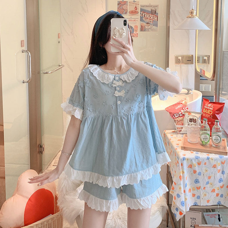 2023 new pajamas girl summer female net red hot style pure cotton cute can be worn outside short-sleeved shorts home clothes