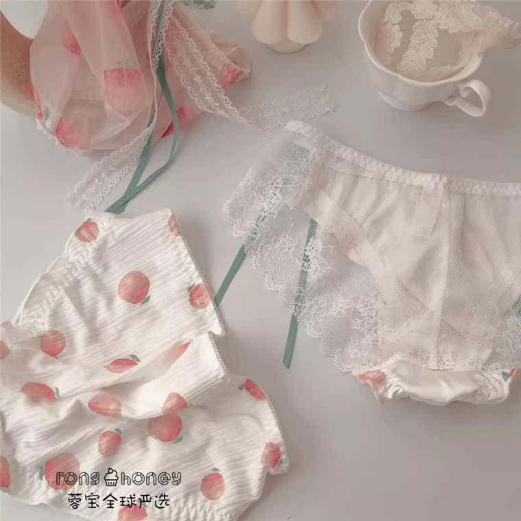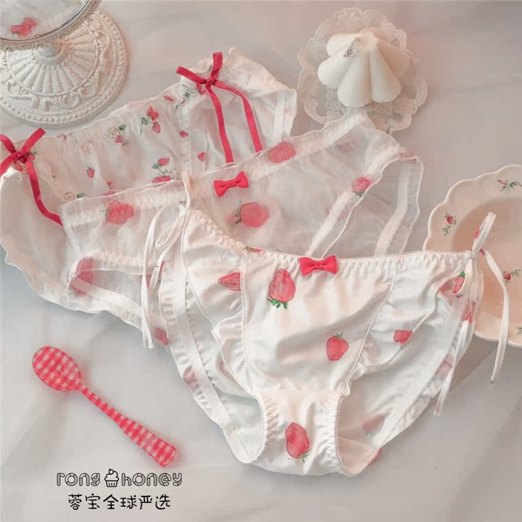 Japanese Strawberry Water Honey Peach Convenient Briefs Women Summer Sweetness Mesh Yarn Strap Pure Cotton Stall Mid-Waist Sexy Triangle Pants