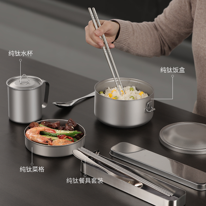 Pure titanium double layer mark cup large capacity with folding handle with lid male titanium alloy coffee cup female water mug tea cup