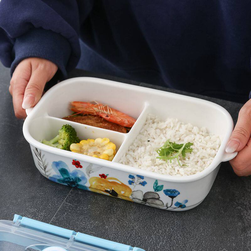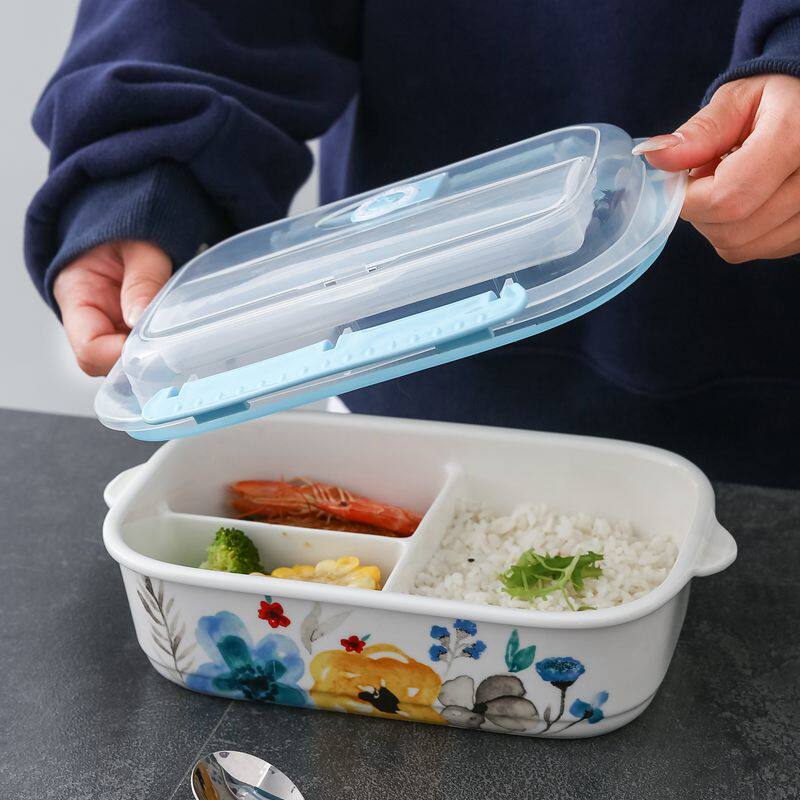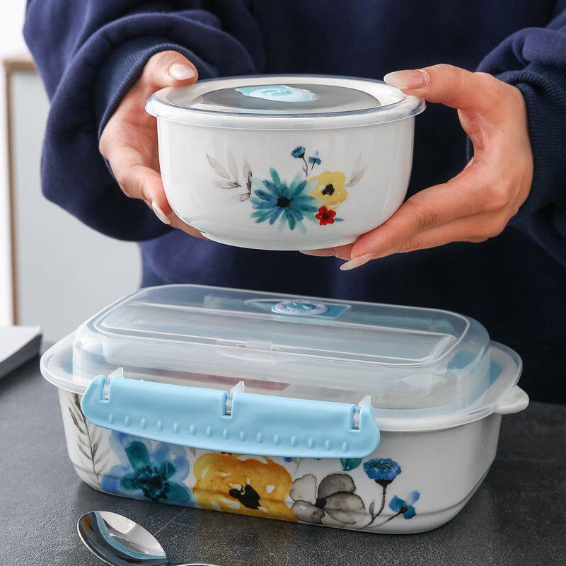 Microwave ceramic lunch box lunch box Chinese-style sealed lunch box bowl with lid can be buckled office worker compartment bowl fresh-keeping box