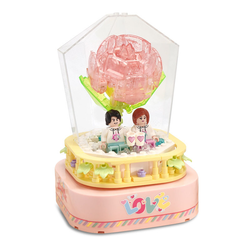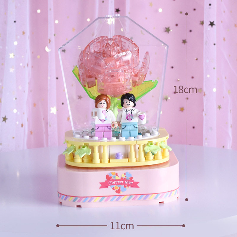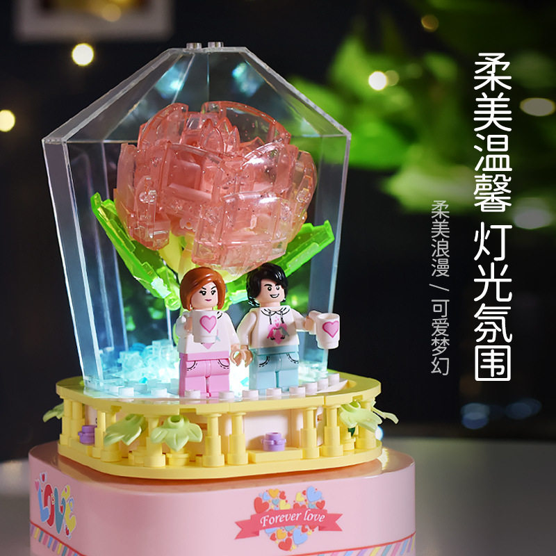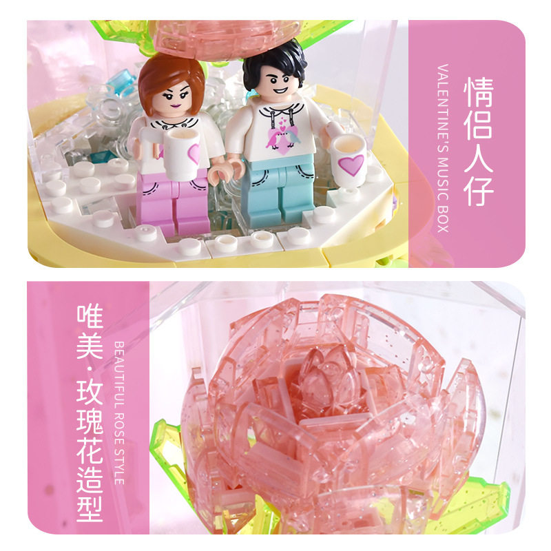 Senbao 601154 Rose Flowers Light Rotating Music Box Assembly Model Assembly Building Block Valentine's Toy Gift