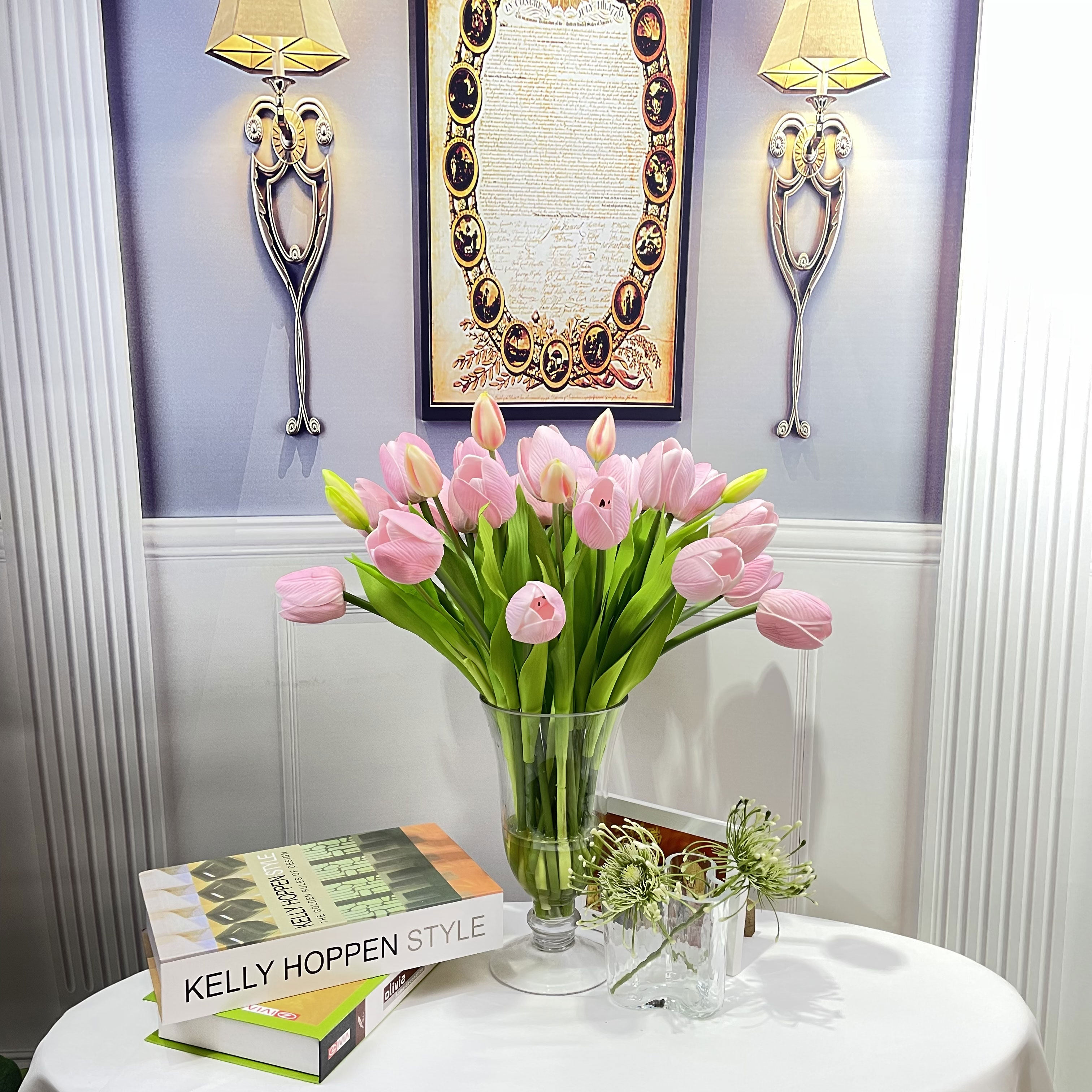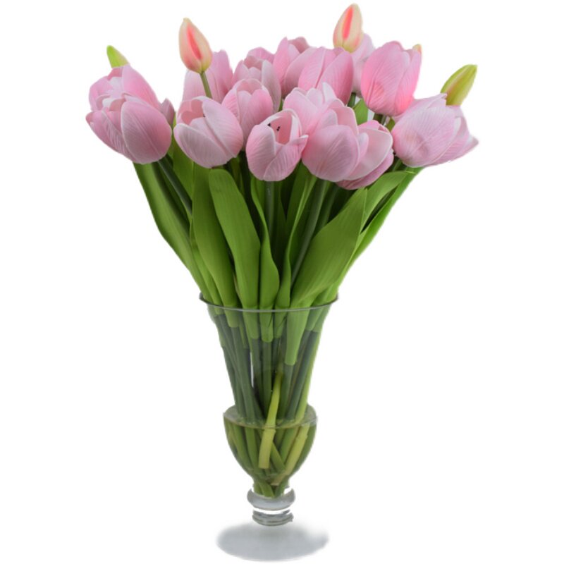 Modern hotel table glass fake water tulip pink goblet soft-packed floral simulation flower touch jewelry