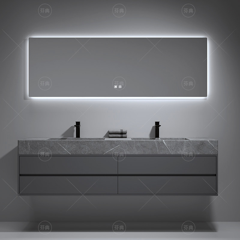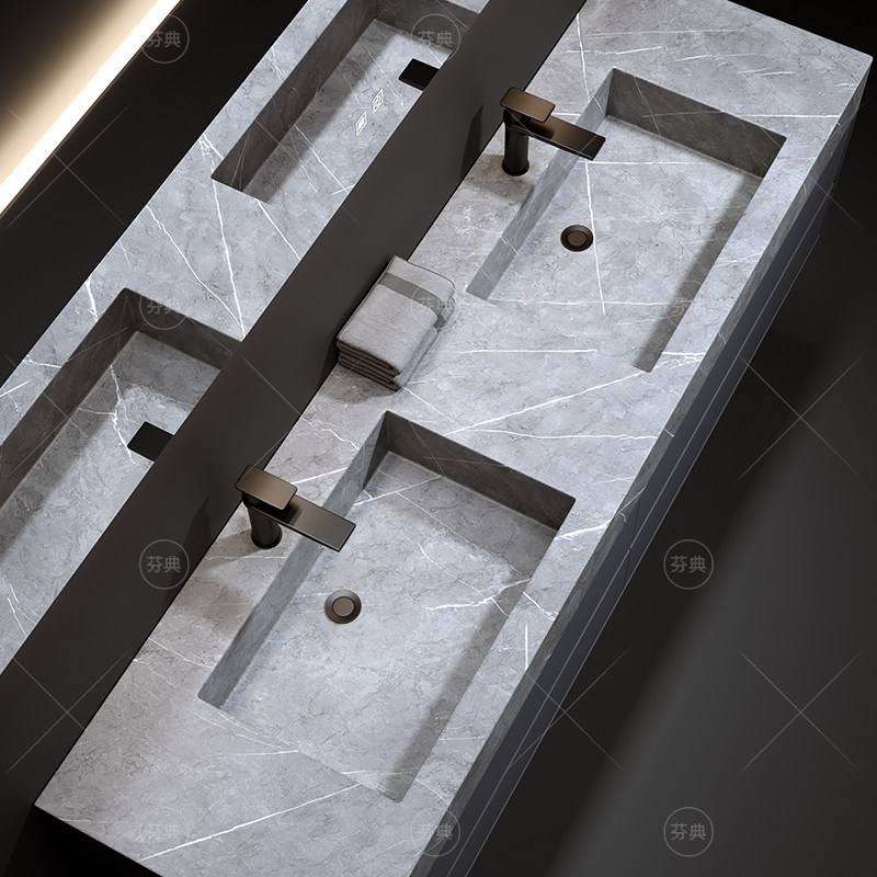 Designer Custom Double Trough Washbasin Minimalist Rock Board Integrated Bath Cabinet Combined Makeup Room Wash Washbasin washbasin 1 6