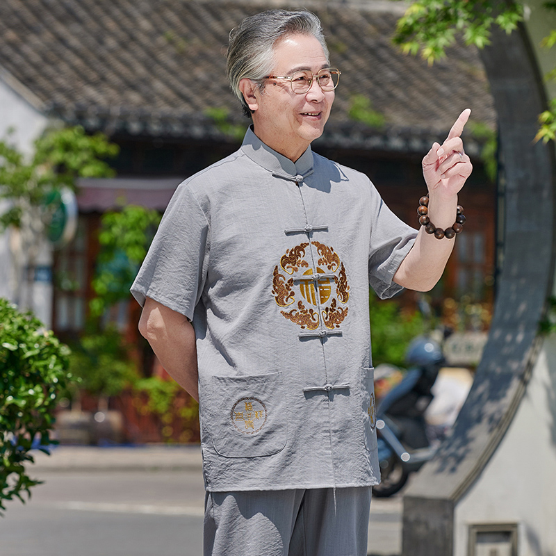 Middle aged Tang Costume Male Grandpa Summer Suit Dad Summer Clothing Short Sleeve 70 80 Year Old Man Over Birthday Clothes