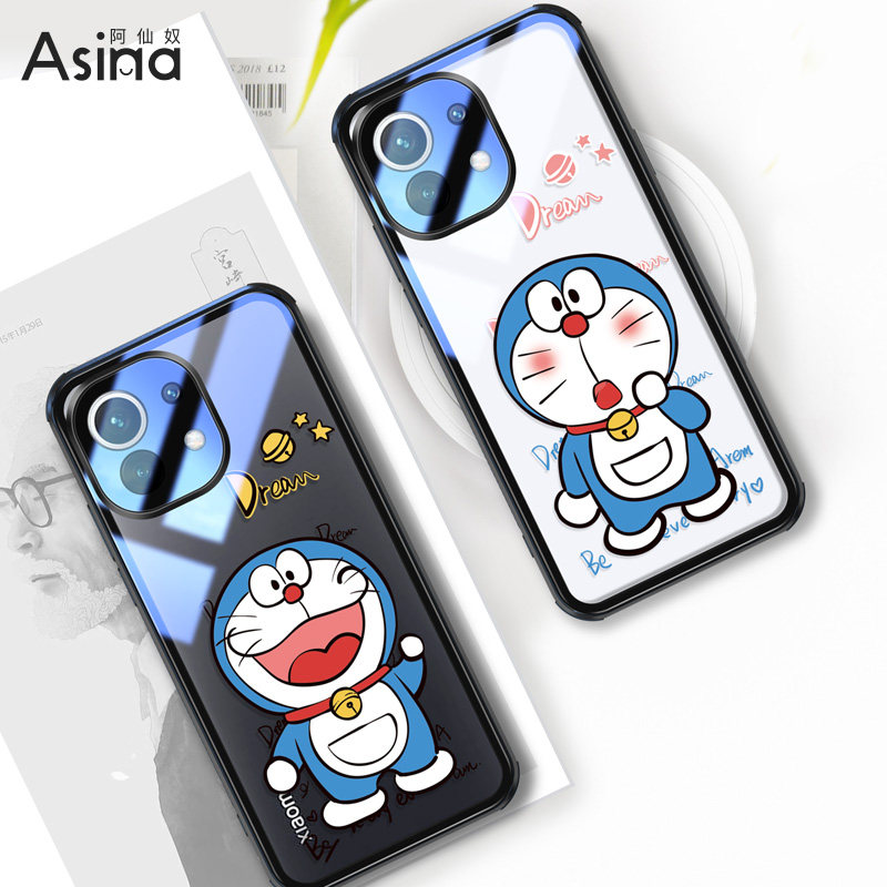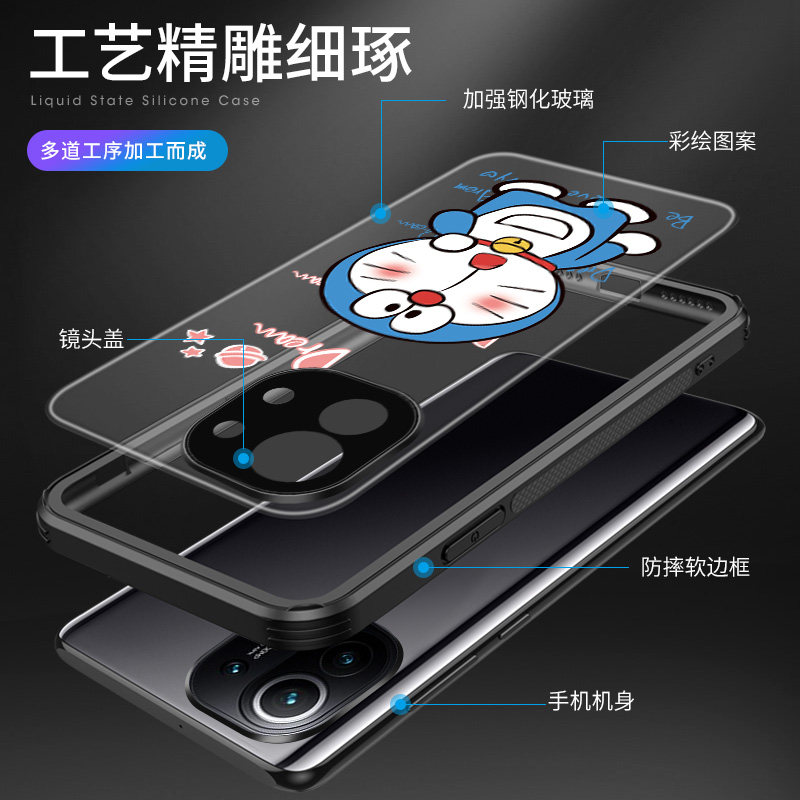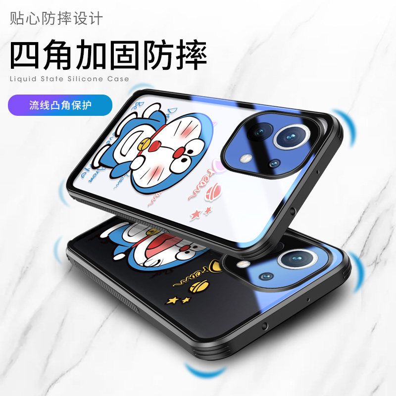 Xiaomi 11-Upgrade full-pack lens circle) Happy with Doraemon A Dream Transparent Glass Anti-Fall★Two Minus 5★Send Fine Hanging Rope Xiaomi 11-Upgrade Full Bag Lens Circle) Stay Doraemon A Dream Transparent