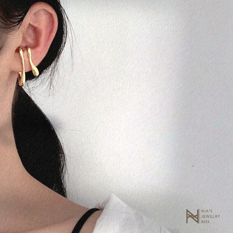 Earbone Clip Women Advanced Sensation Lukewarm Small Crowddesign s925 Pure Silver Ear Hanging Irregular Line Brief Geometric Ear Clip