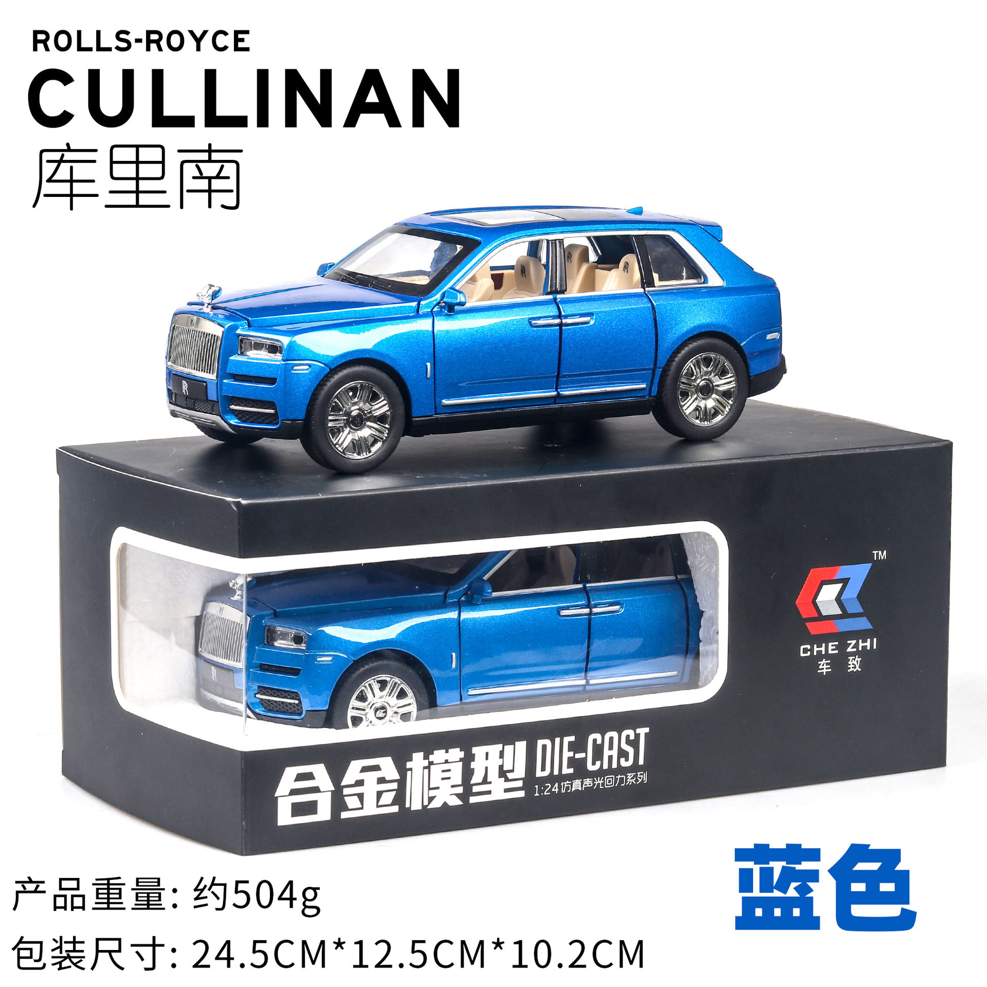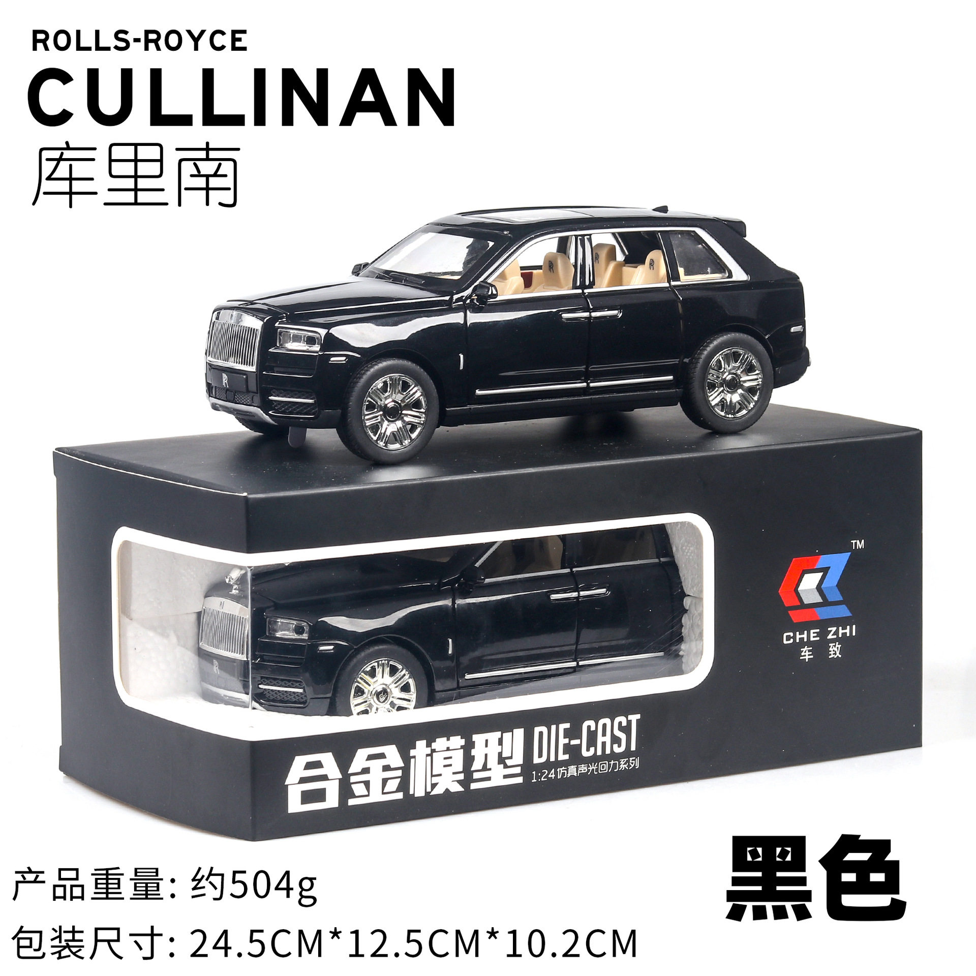 1:24 simulation Cullinan alloy car model sound and light pull back six door metal off-road vehicle ornaments for men's high-end gifts