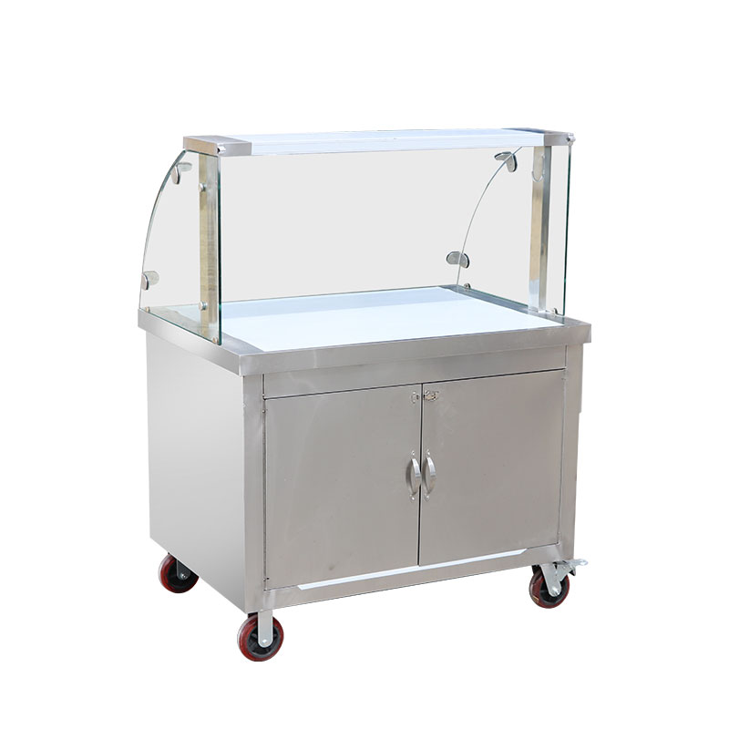 Stainless Steel Trolley Customised Moving Car Cart Swing Stall Glass Cover Sell Ice Pink Cold Peel Cold Dish Pushcart Outside