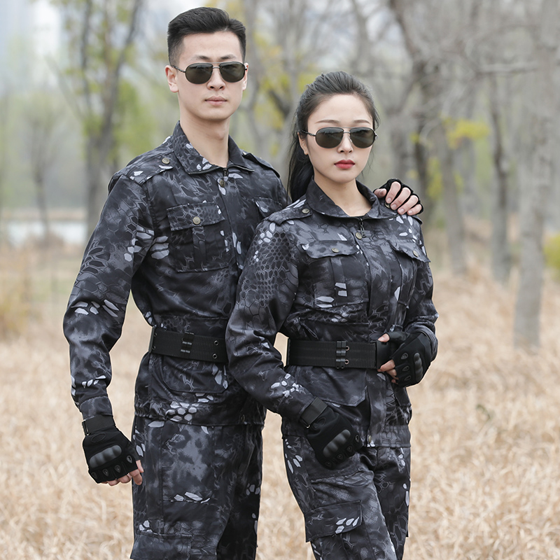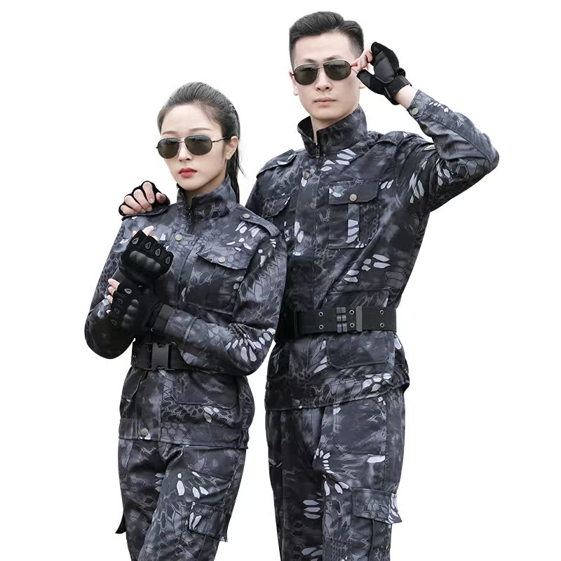 Black python camouflage suit male summer military camouflage clothing student army training wear-resistant workplace labor clothing
