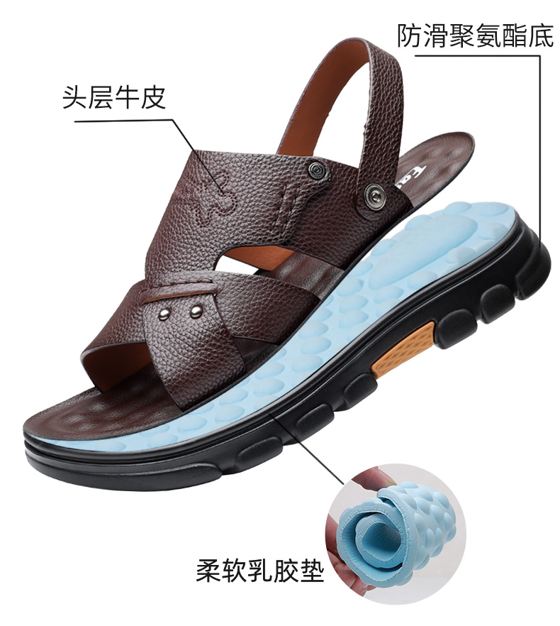 Leather sandals men's leather Summer 2022 new men's casual sandals Driving dual-use non-slip outdoor beach shoes