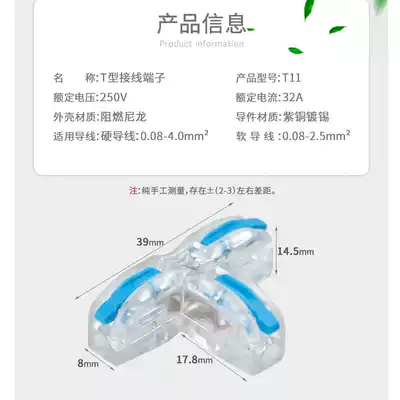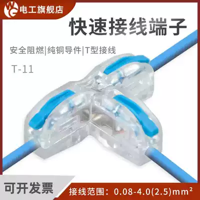 T11 type transparent quick terminal block one in two out three-way wire butt connector paralleler 4 square hard wire