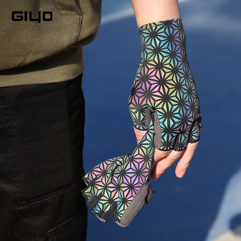 GIYO reflective light-sensitive colour discoloration glove mountain road car bike short finger and half finger male and female sport riding