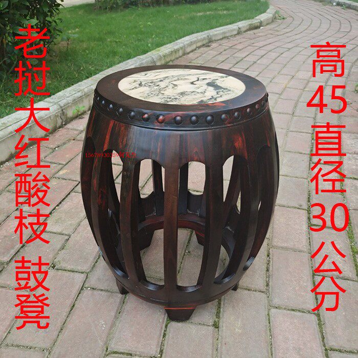 Mahogany drum stool Liao guo da red sour branch mortise structure drum pier cross toe yellow sandalwood piano table stool mahogany furniture