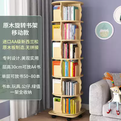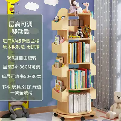 Solid Wood Children's rotating bookshelf large-capacity baby book storage shelf multi-function household multi-layer floor shelf