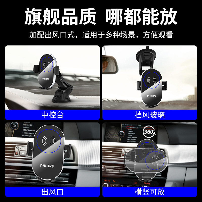 Philips car mobile phone bracket wireless charger fully automatic induction navigation frame suction cup car support frame