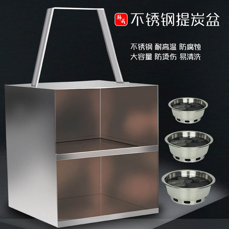 Stainless steel carbon pot box charcoal box barbecue shop Korean barbecue tools baking tray Baking net collection box baking tray cart