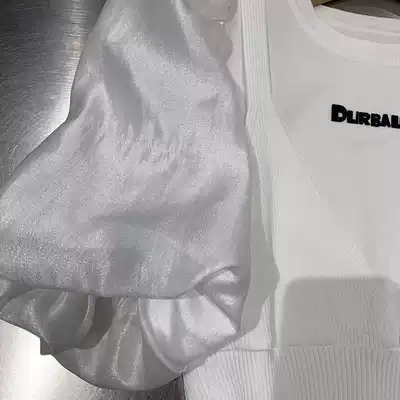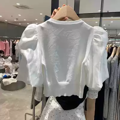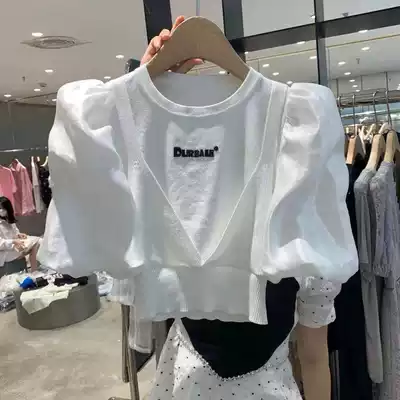 Design sense stitching fake two pieces of ice silk bubble sleeve shirt women's summer new Korean slim slim short top
