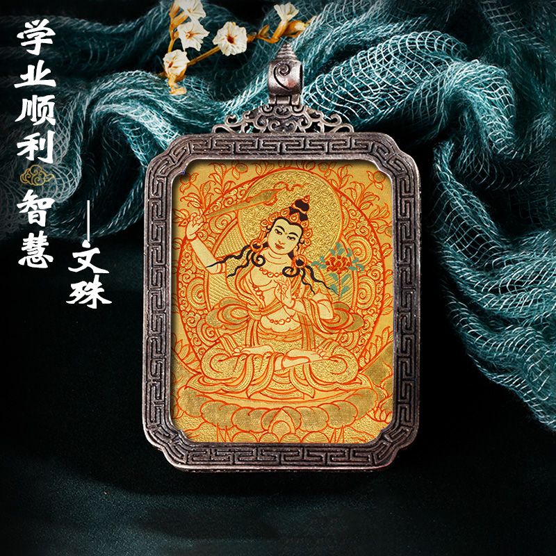 Pure hand painted 24K gold leaf Donka pendant Wenshu Buddha statue Buddha This life Buddha patron saint pure silver Buddha Buddha Medal Pendant