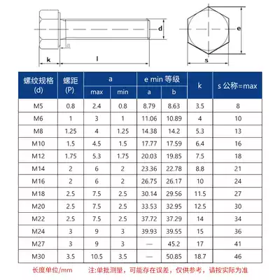 M5M6M8 hexagon 304 stainless steel full tooth Bolt lengthy screw screw set 10 12 16 20