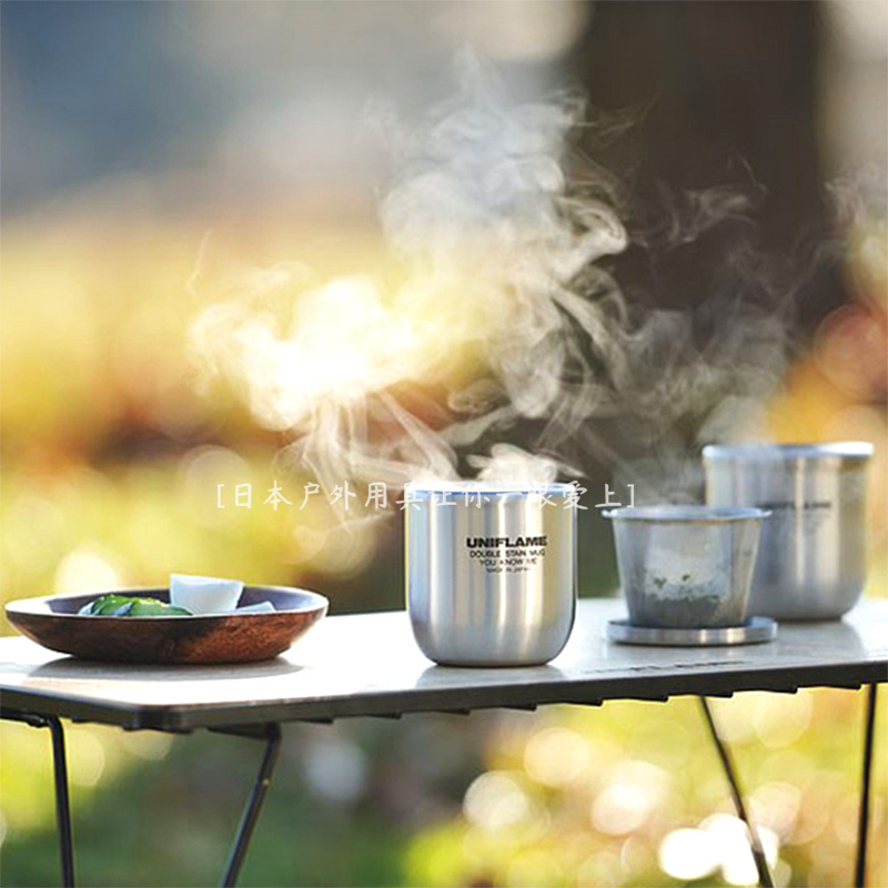 Japan UNIFLAME camping outdoor hollow stainless steel heat insulation design tea cup tea art filter cup spot