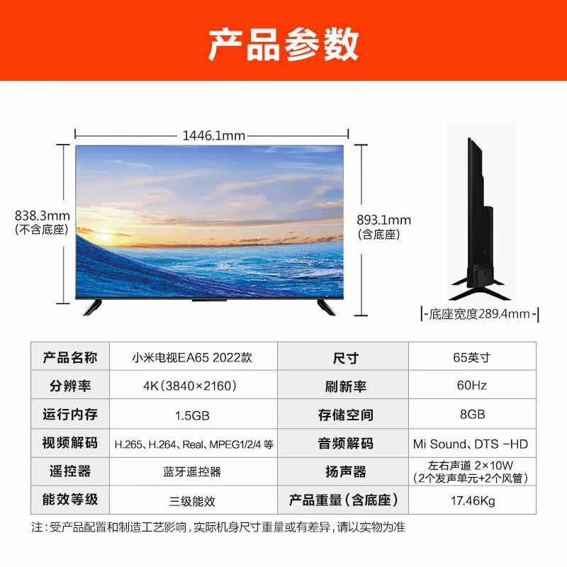 Xiaomi TV EA65 2022 65 inch 4K ultra high definition metal full screen voice LCD TV 55