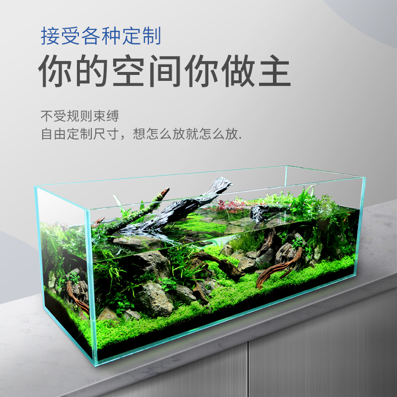 Super white fish tank Gold crystal glass desktop living room open ecological aquatic plants goldfish landscaping Lazy fish tank custom