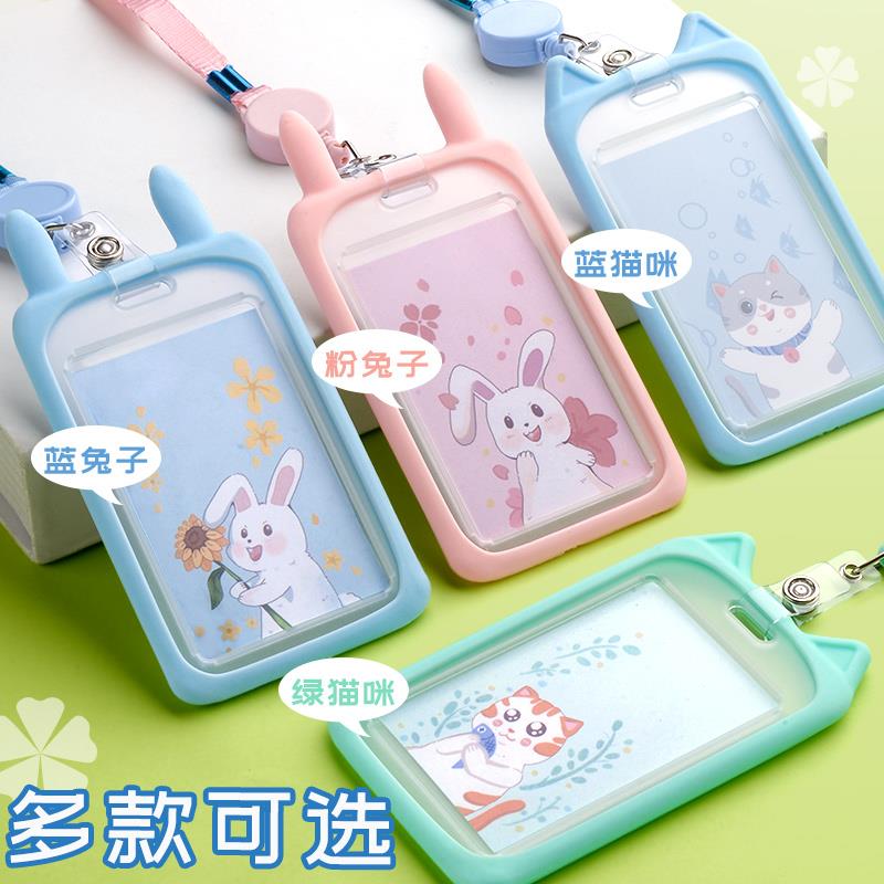 Cutting Sleeve Student Campus Bus School Card Meal Card Citizen Access Control Chest School Card Protection Soft Silicone Gel Hanging Neck Document Work Card Transparent Soft Glue Children Pick Up Kindergarten A Cartoon With Hanging Rope Cute
