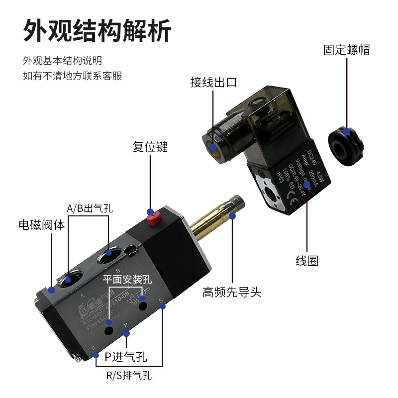 Yad's valve type pneumatic solenoid valve 4V210-08 two - bit five - way switching valve 220V solenoid control valve 4v310