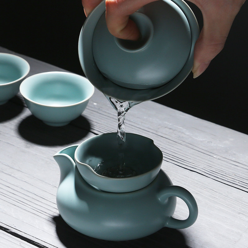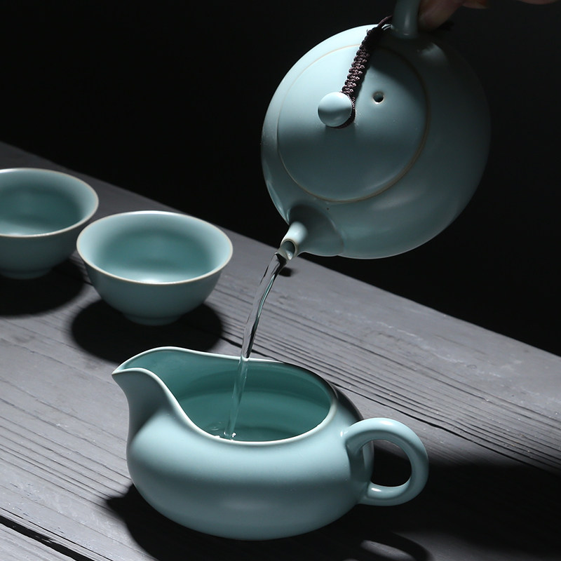 Ru kiln ceramic set high-quality rich teapot cover bowl complete set of kung fu tea set open piece can raise gold wire with gift box