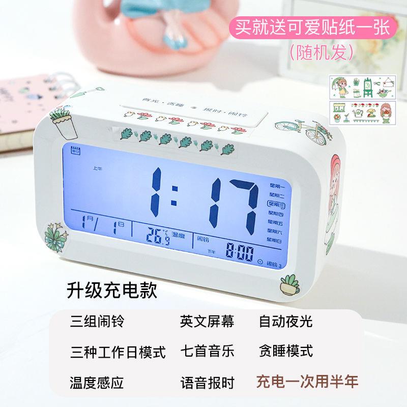 Cute alarm clock for students with silent bedroom dorm Multi-function intelligent rechargeable sub-table Large volume luminous digital