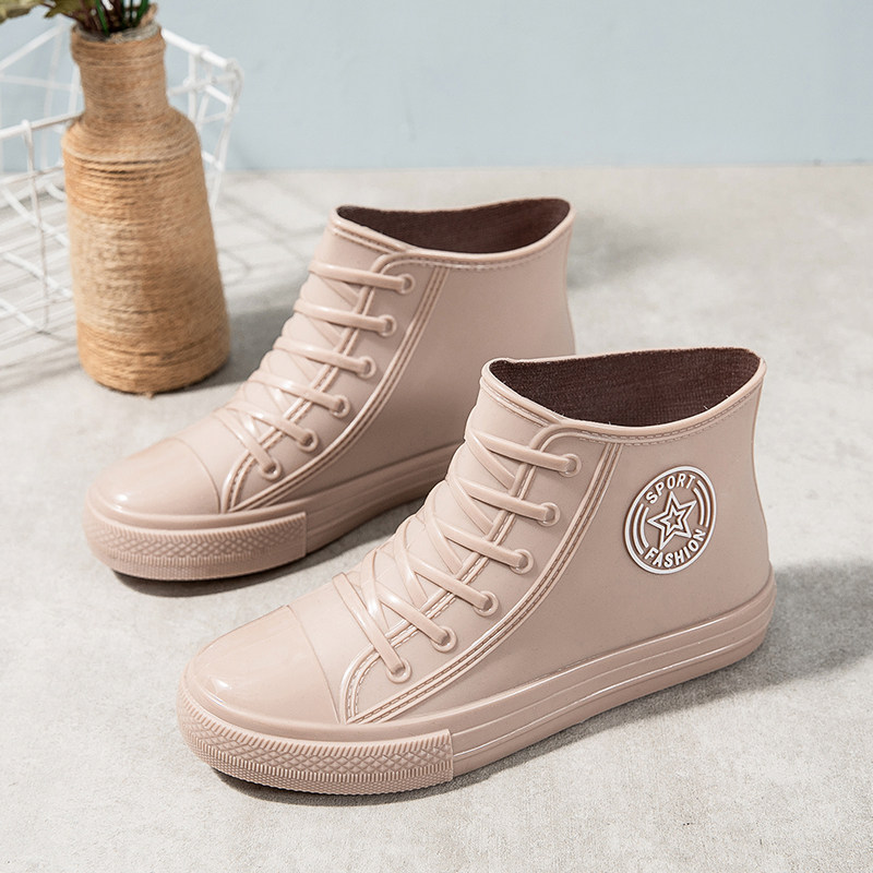 Sunny Rain Shoes Women's Water Boots Warm Plus Suede Waterproof Shoes Women Rain Shoes Women Rain Boots Rubber Shoes Single Shoes Students Low Mid Boots Carwash